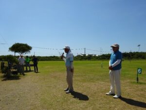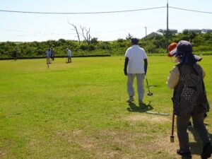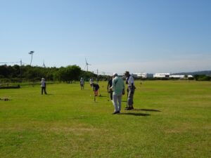 同好会々員以外の初心者の方はベテランの方のアドバイスを受け、和気あいあいとゲームを楽しみました。競技中あちこちで、“ナイスショット””ナイスホールインワン”の声と共に大きな笑い声も響き、親睦を深める楽しい3時間のひと時を過ごしました。