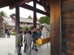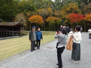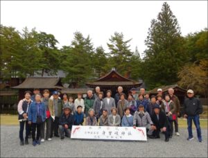 昼食は山梨名物「ほうとう鍋」をいただき、お腹と暖を満たした後、身曾岐神社を訪ね有名な能楽堂の前で「集合写真」を撮影し各々紅葉を楽しんだり参拝し身を清めました。