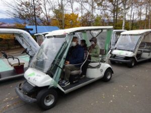 富士見高原リゾートでは、標高1,420mの雲上まで天空カートに4名づつ乗り込み25分間の小旅行を楽しみました。高原頂上は、冬模様で肌寒かったですが、天空カフェの飲み物でそれぞれ暖をとり、周囲の南アルプス・北アルプスをはじめ、雄大な山の景色を堪能し、非日常の体験をしました。