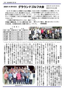 新年のごあいさつに加え、昨年の地区退福共40周年記念グラウンドゴルフ大会・信州旅行・こども食堂支援の取り組みなど掲載されています。